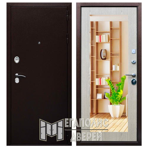 Модель «Броня Элит» – входная дверь из среднеценового сегмента, при этом имеет характеристики класса премиум, к ним относятся: 2 стальных листа, увеличенная толщина полотна (90 мм), наполнение минеральной плитой, 3 контура уплотнения, замки «Гардиан» самого высокого класса взломостойкости. Дверь оформлена в сдержанном классическом стиле, прекрасно будет смотреться в любом интерьерном решении. Зеркало на всю площадь внутреннего полотна является преимуществом данной модели. Дверь можно устанавливать как в квартире, так и в загородном доме.