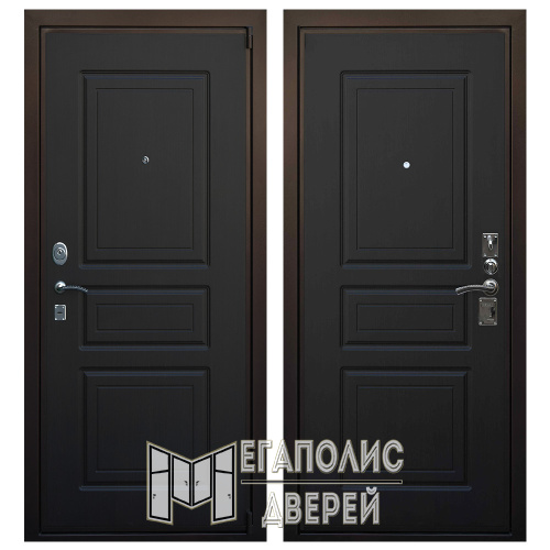 За безопасность отвечают взломостойкие замки известной марки «Гардиан», также имеется дополнительная ночная защёлка «вертушок». Дизайн в виде филёнок с обеих сторон полотна идеально дополнит интерьер, выдержанный в сдержанном современном стиле.